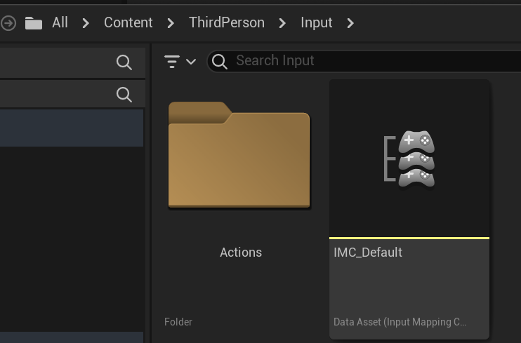 ThirdPersonCharacter를 임포트할때 이미 입력도 같이 왔습니다. 이걸 사용하겠습니다.