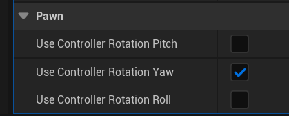 Pawn은 Yaw Rotation만 체크해줍니다.