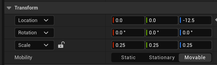 bodyMeshComp->SetRelativeScale3D(FVector(0.25f));