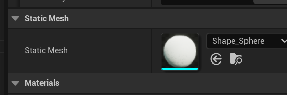 Mesh Comp의 Static Mesh의 풀다운메뉴에서 Shape_Sphere를 선택해줍니다.