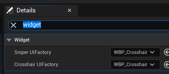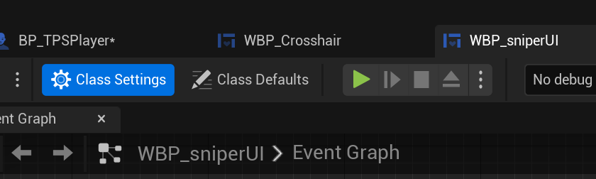 일반모드에서도 조준모드를 위해 위젯을 하나 더 생성하고 왼쪽 Ctrl키를 누르면 스나이퍼 모드가 됩니다. bSniperAim변수를 이용해 스위칭합니다.
