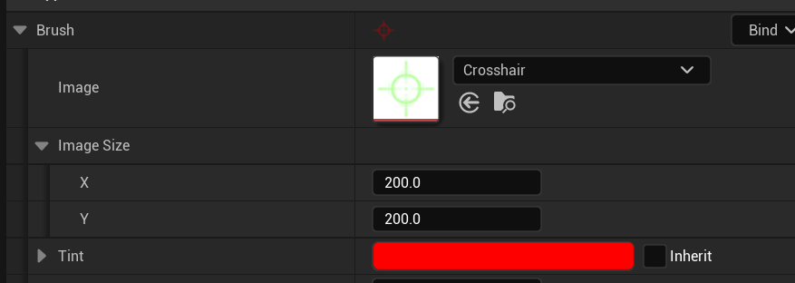 아까와 비슷하게 하고 Image Soruce는 Crosshair입니다. Tint를 빨간색으로 변경합니다.