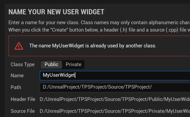 UMyUserWidget 클래스가 생성되었습니다. 이걸 나중에 사용합니다.