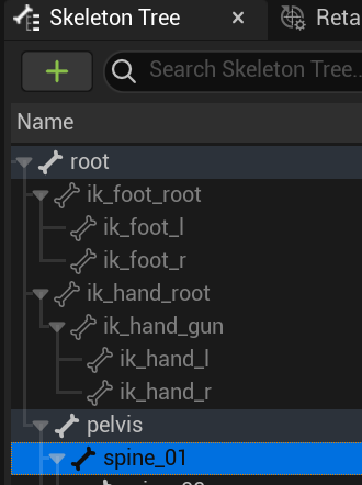 Skeleton Tree의 Bone이름으로 허리부분입니다. 애니메이션을 상하로 나누기 위한 기준입니다.