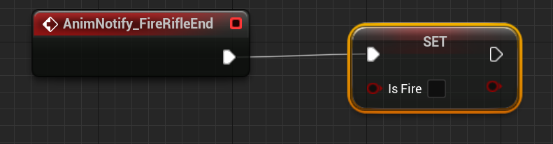 ABP_Player 블루프린트 이벤트그래프에서 FireRifleEnd를 검색해 노티파이가 오면 변수를 False로 만들어줘 Fire할수 있게 합니다.