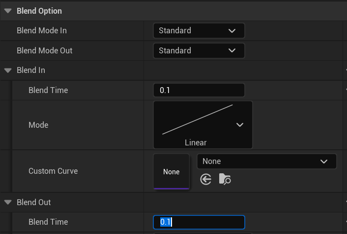 열어서 Blend In/Out 시간을 0.1로 바꿔줍니다.