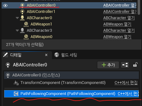 ● 플레이해 보면 ABAIController가 생기는 것을 확인할 수 있다.