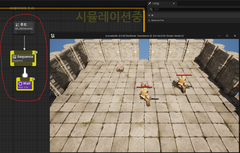 ● 게임을 플레이하고, 비헤이비어 트리를 확인해 보면 비헤이비어 트리의 로직 흐름을 확인할 수 있다.