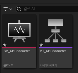 ● 비헤이비어 트리를 제작하려면 '비헤이비어 트리'와 '블랙 보드 애셋'을 생성해야 한다.