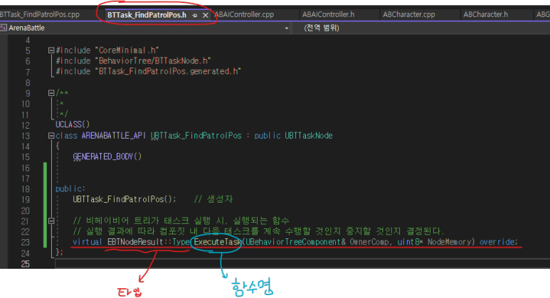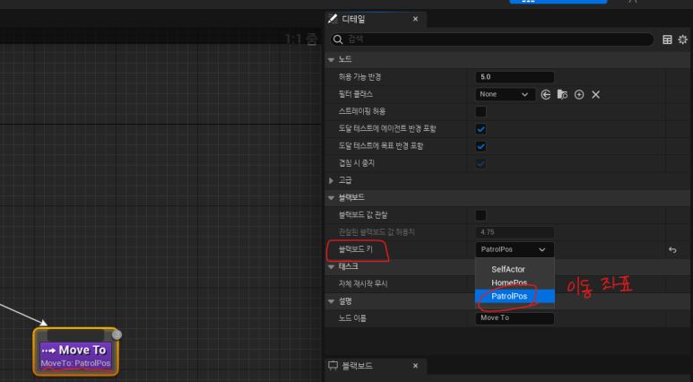+ C++에서 클래스 이름이 BTTask_FindPatrolPos이지만, UI에서 표현할 때는 BTTask_ 접두사 부분은 자동으로 걸러진다.