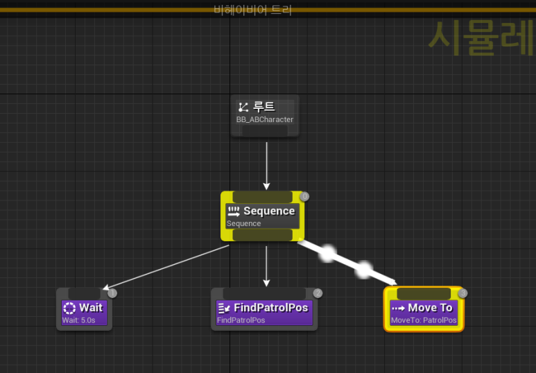 ● 새로운 FindPatrolPos 태스크가 만들어졌으면, Wait 태스크 오른쪽에 배치해 준다.