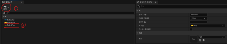 1. NPC가 생성됐을 때, 위치 값이 필요하다. 블랙보드에서 이를 보관하도록 Vector 타입으로 키를 생성한다.