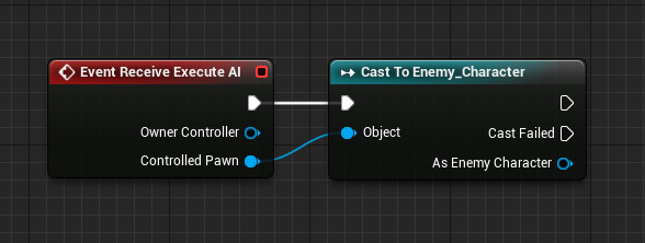 Enemy_Character 라는 AI가 캐릭터 블루프린트(Character Blueprint) 에 액세스하도록 형변환(Cast) 노드를 사용하는 것입니다.
