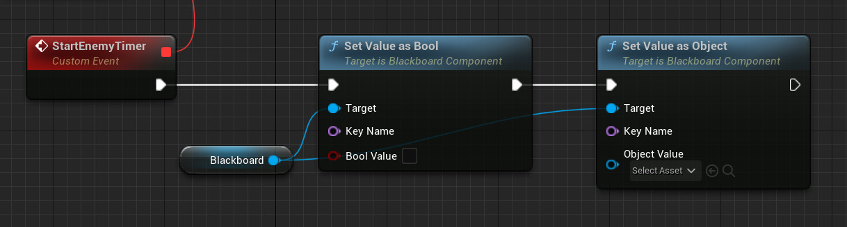 - 블랙보드 에서 Set Value as Bool 과 Set Value as Object 를 사용하여 아래와 같이 연결합니다.