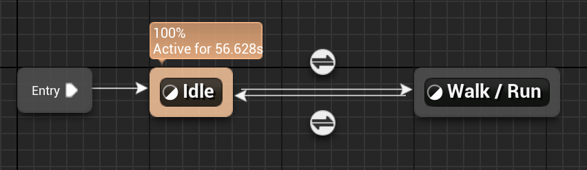 따라서 서 있을대만 허리가 휘게 해보겠다. 이전의 Transform Bone을 짤라내서 AnimGraph를 원래대로 돌려놓고 좌상 Locomotion을로 들어가자