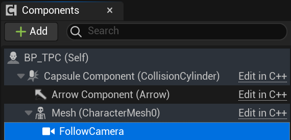 마지막으로 BP_TPC FollowCamera를 Mesh의 자식으로 만들고