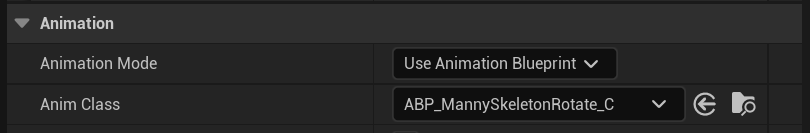BP_TPC의 AnimClass를 ABP_MannySkeletonRotate로 지정한다.