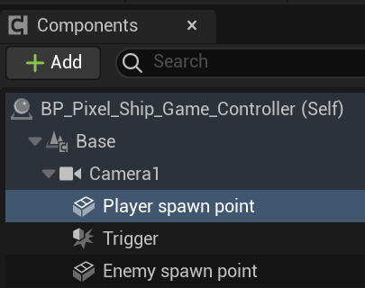 레벨의 BP_Pixel_sSHipGameController는 플레이와 에너미의 스폰 포인터만 가지고 있다.