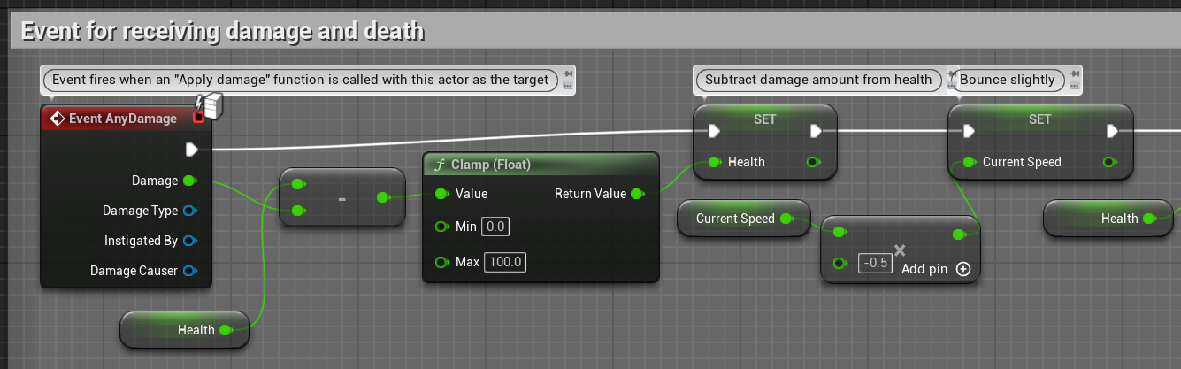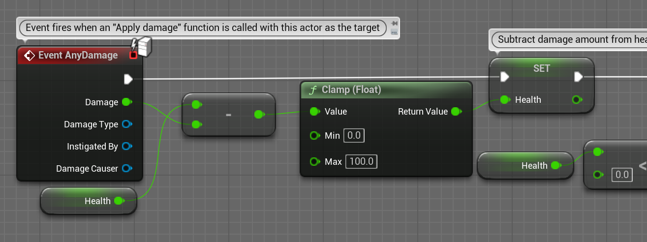 - 타격을 받을 때마다 Apply Damage에 적용된 값으로 Health 감소