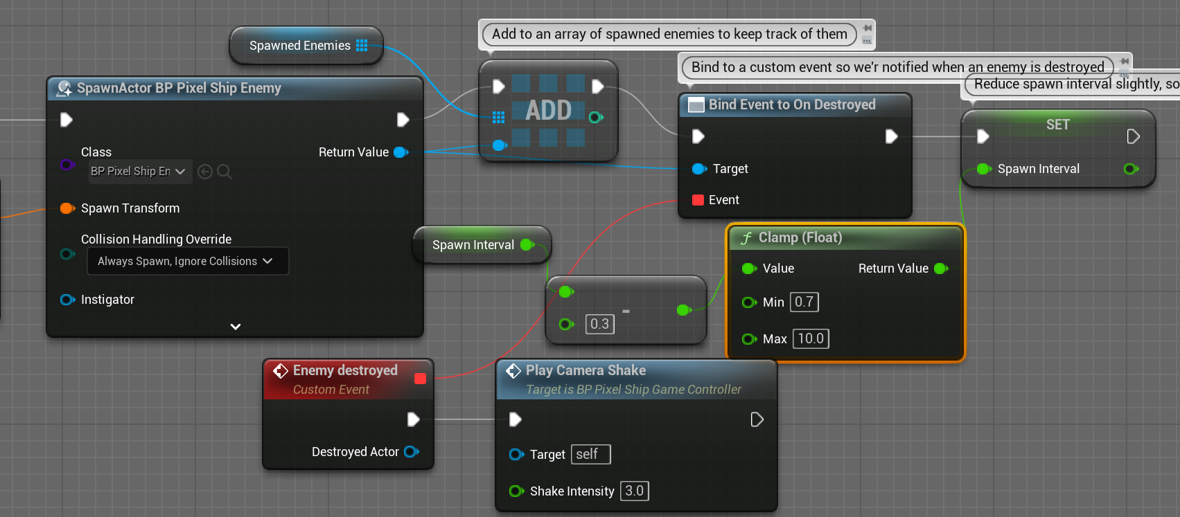 BP_Pixel_sSHipGameController 는 Player와 enemy의 spawn과 Destroy를 관리하는 컨트롤러이다.