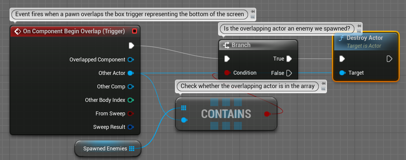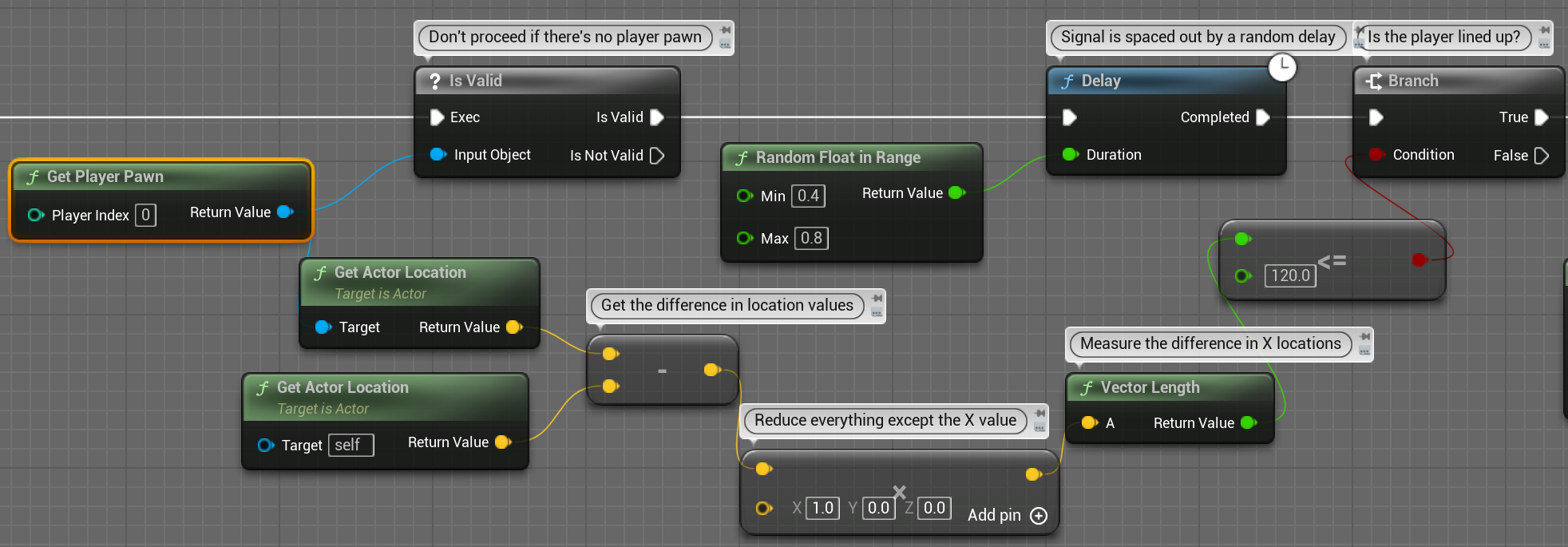 플레이어와 적과의 거리가 120미만이면 총알을 발사하기위해 Branch 노드를 사용합니다.