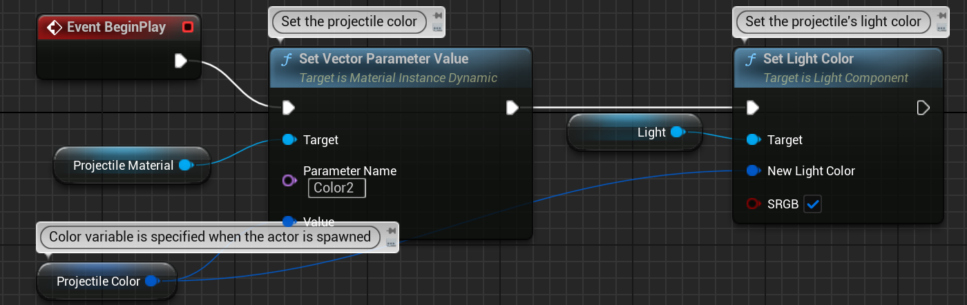 BeginPlay에서 머터리얼과 라이트칼라를 지정해주고