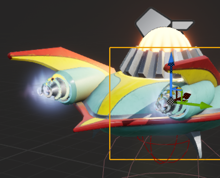 Visible을 켜주고 우주선의 방향과 맞춰주기 위해 PhysicsLinearVelocity를 설정해주고