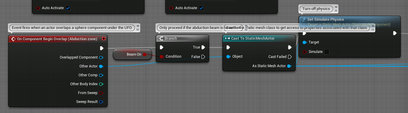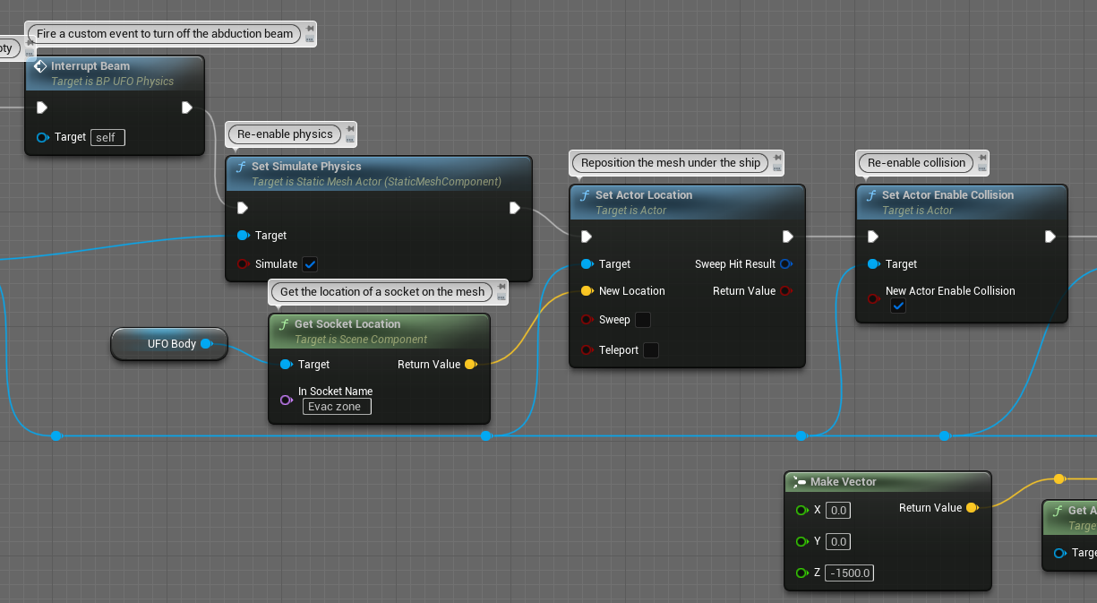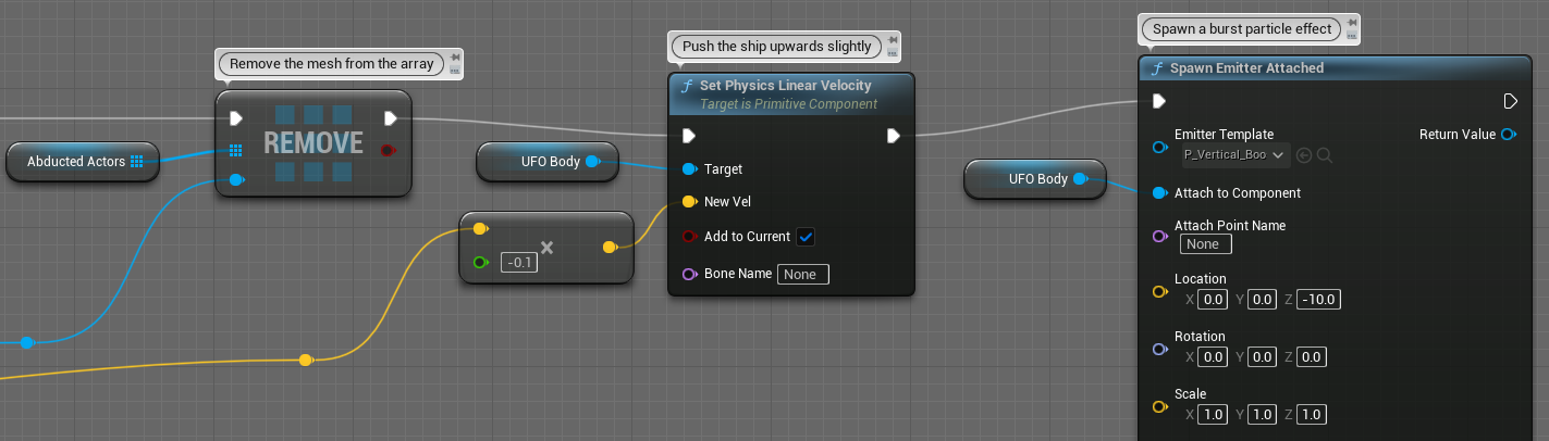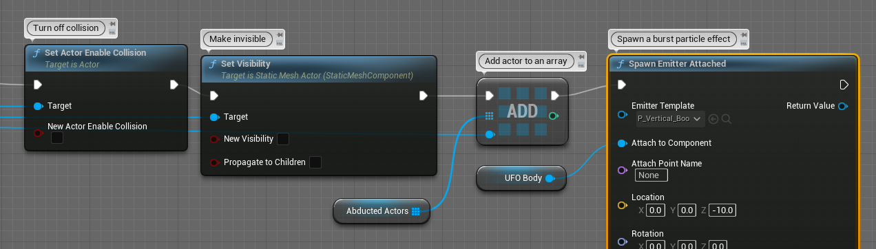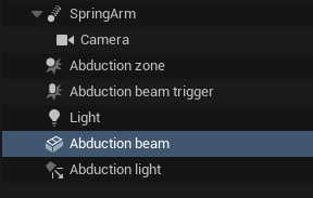 빨려올라가는 액터들은 우주선밑 Abduction zone과 오버레이가 발생하면 상승을 멈추고 Abducted actors에 추가된다.