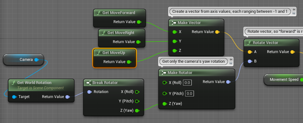 입력 움직임을 이용해 Vector를 만들고 카메라의 Z축만큼 돌려주고