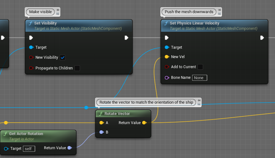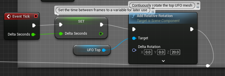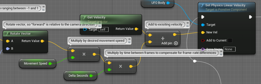 EventTick을 이용해 UFO Top부분을 계속 돌려준다. 이후 Physics Lenear Velocity를 설정하는데