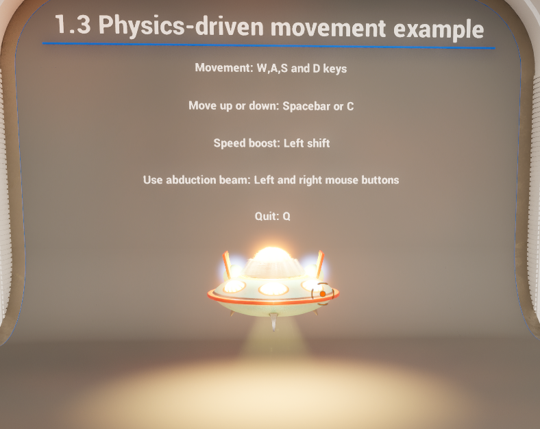 이예제의 재미있는 점은 이 비행선을 몰고 오른쪽 목장에가서 좌클릭을 하면 빔이 나와 소를 포획하고 목장으로 가서 우클릭을하면 한마리씩 내보낸다.