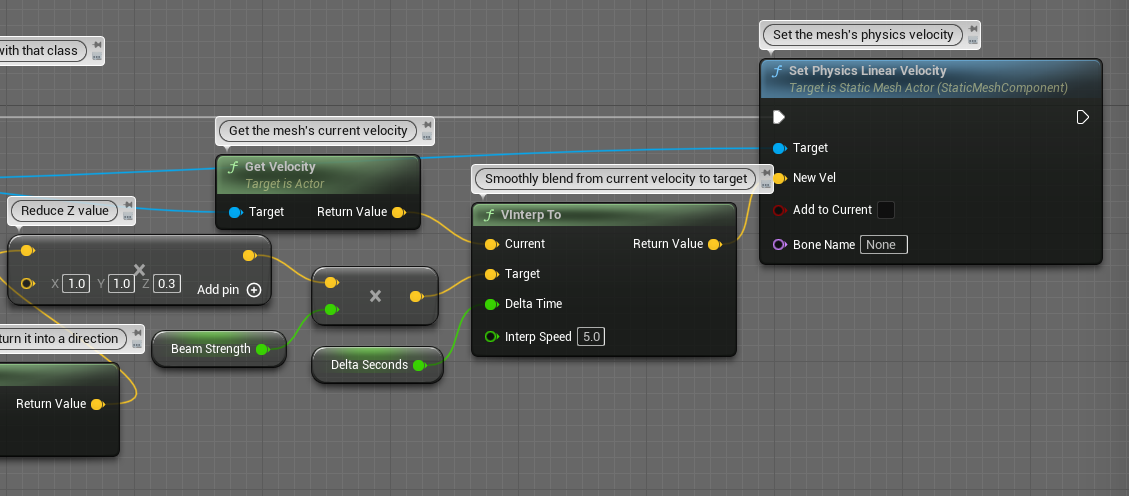 SetPhysics Linear Velocity로 속도를 주어 들어올리는 효과를 준다.