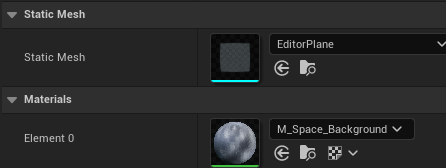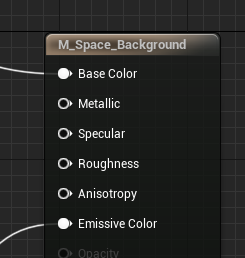 Material인 M_Space_Background를 클릭해보면 생각보다 복잡하다. BaseColor와 EmissiveColor2가지 입력을 받는데 BaseColor는 수직으로 아래로 움직이는 배경이고 EmissiveColor를 밝은 dot들아 아래로 움직인다.