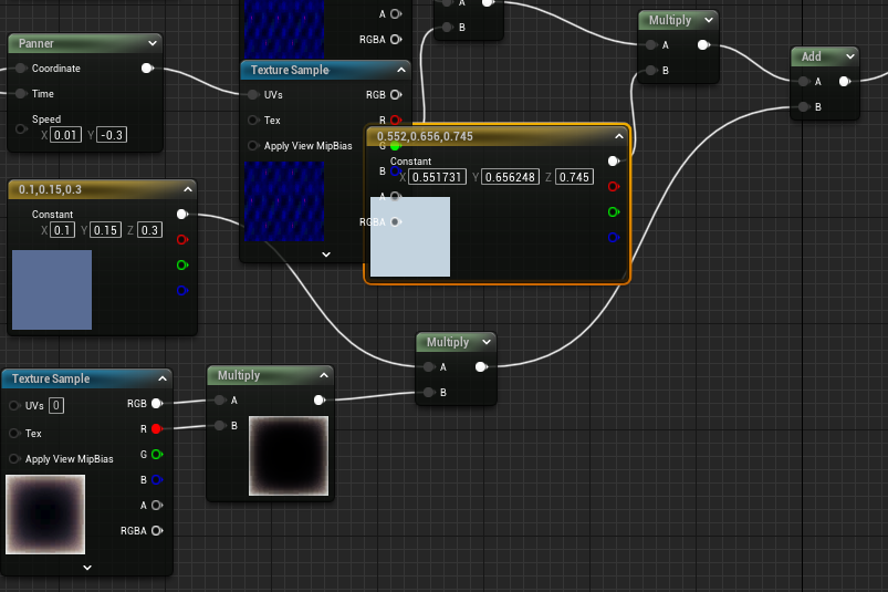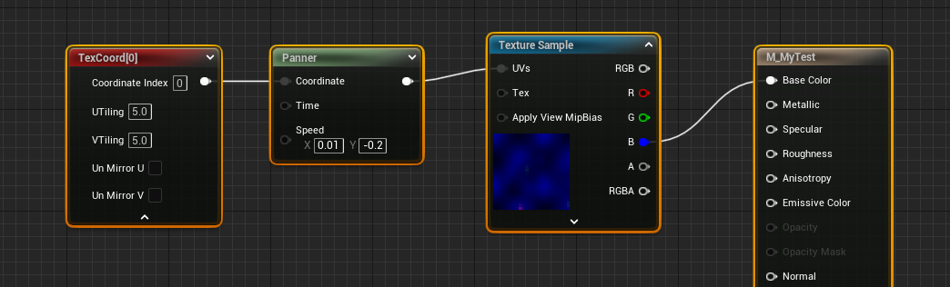 빠르게 흐르는 작은별을 표현하기 위해 다음노드를 EmissiveColor에 연결해주는데 연결하기전