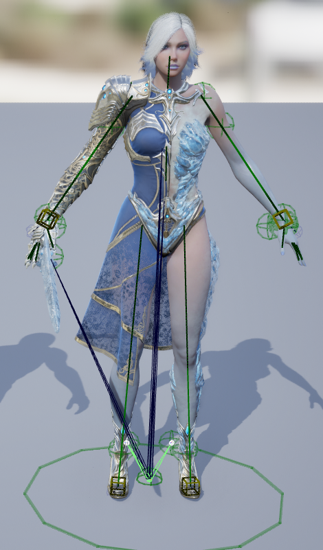 위에서 언급했다시피, 애니메이션 시퀀스파일이나 리타게터 파일을 열어서 IK 본을 한번 확인해볼 수 있다.