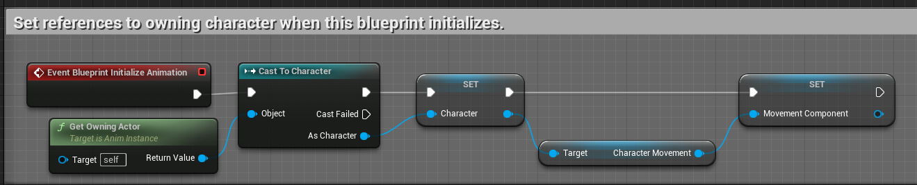 이후 EventBlueprintUpdateAnimation에서 Charater가 Valid할때만 노드를 진행하다.