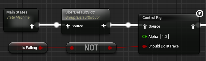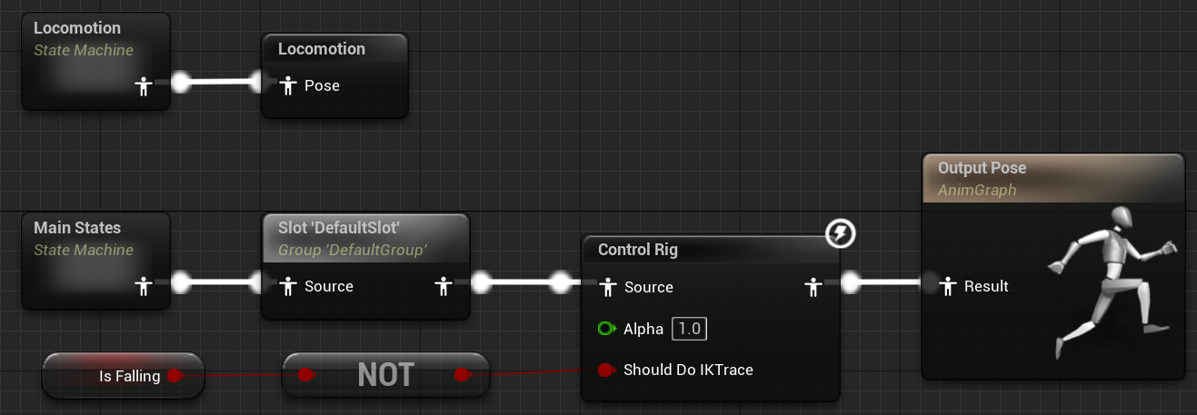 그밖에 AnimMontage를 위한 Slot와 지상에 있다면 ControlRig를 처리한다. 이컨트롤리그는 발바닥이 바닥에 붙게 해주는 기능을 가지고 있다.