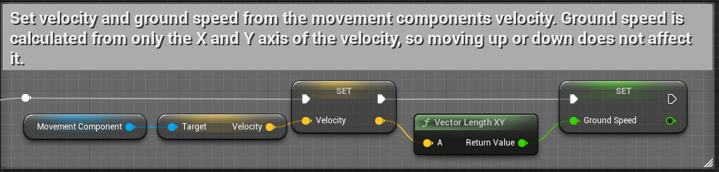 Pawn의 기본변수 Velocity를 이용 VectorLenghtXY를 구한다 Z값을 제외한 값으로 2차원적인 속도를 구한다.