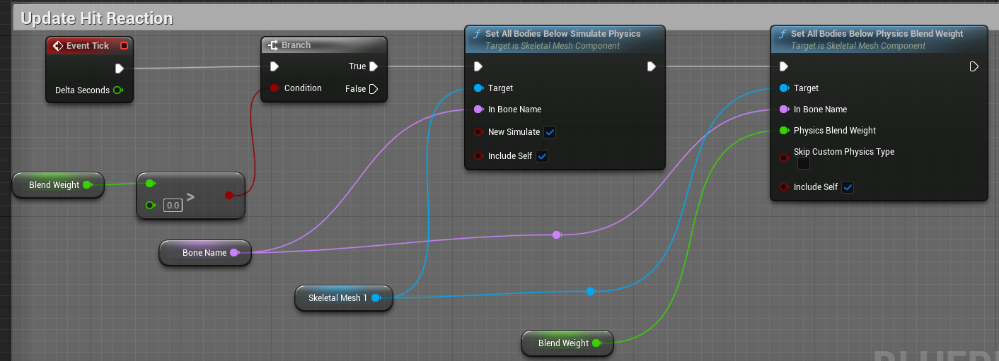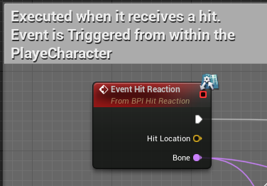 HitReactoin BPI는 Character의 EventHitReaction을 call하고 Bone이름을 전달한다.