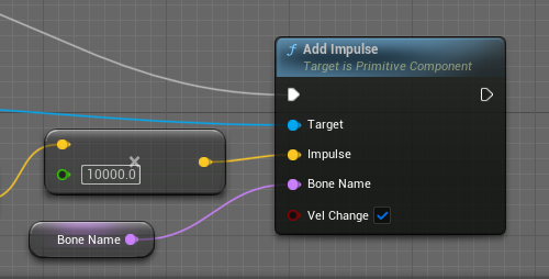 add impulse의 힘도 쎄게했다. BoneName은 마우스가 클릭한곳으로 놔두었다.