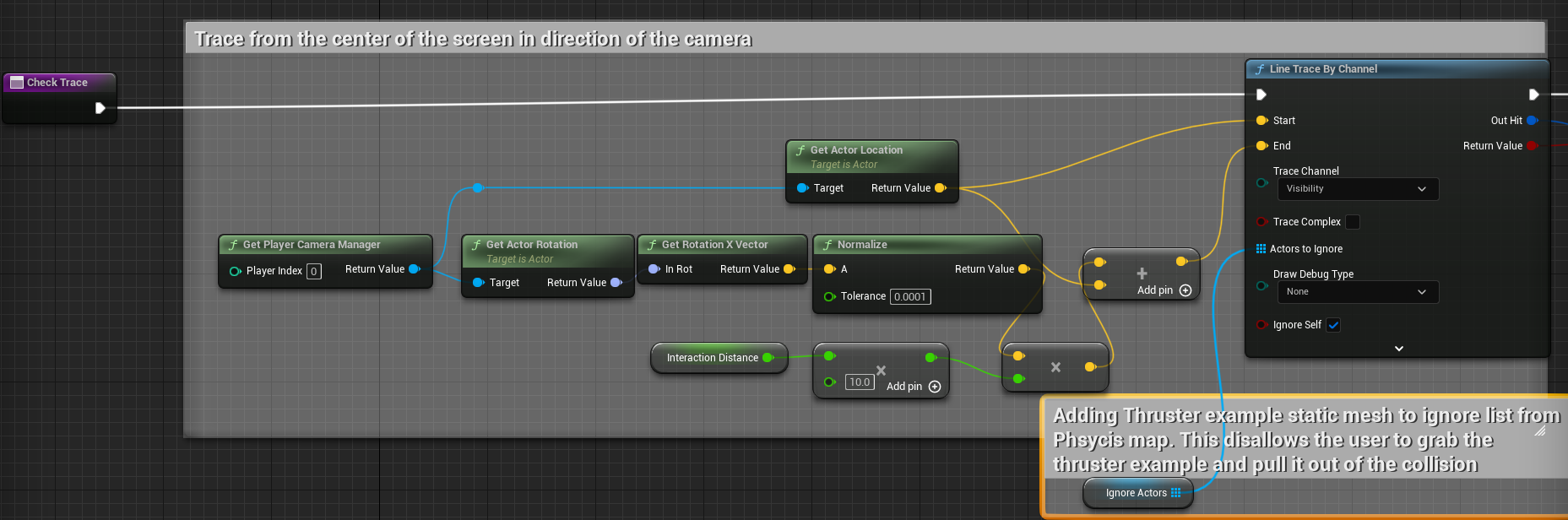 카메라의 위치에서 보는 방향으로 LineTrace를 해 충돌액터를 구한다.