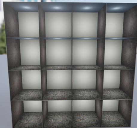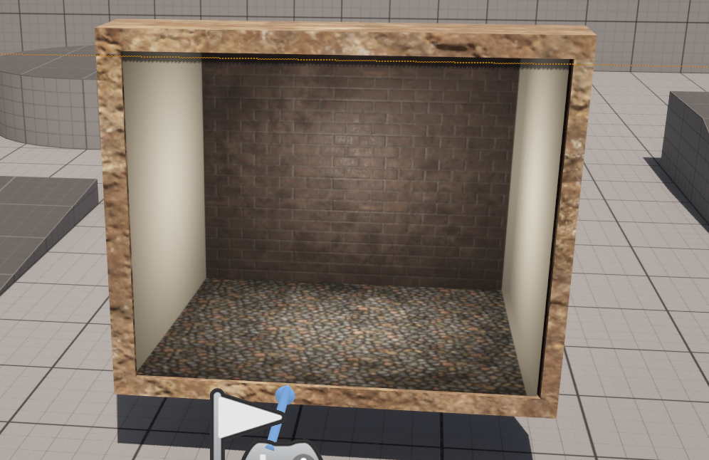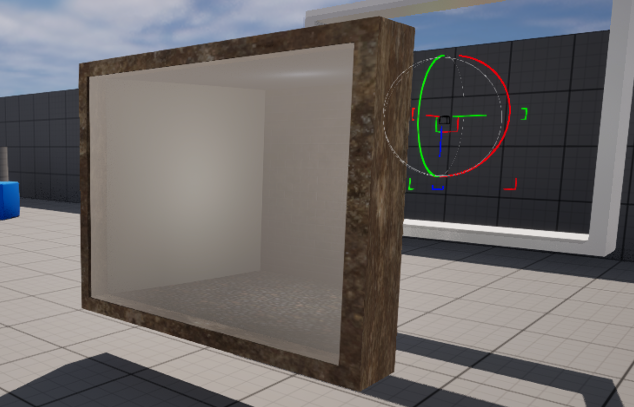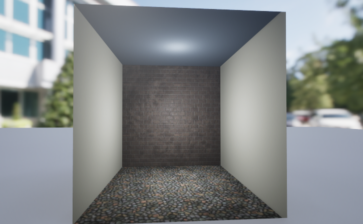 큐브를 레벨에 놓고 CT_Interior_Maste 모터리얼을 적용하면 각도에 따라 면에 방이 보인다.
