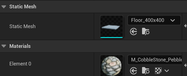 StaticMesh 컴포넌트를 추가하고 이름을 Floor로 하고 다음과 같이 지정해준다.