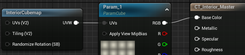 에디터를 열고 Interiocubemap노드를 추가하고 편하게 보기 위해 프리뷰창의 왼쪽2번째 큐브를 선택하자. 그럼 텍스쳐가 방처럼 보인다.