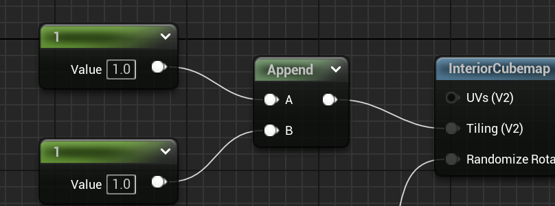 1+좌클릭을 2개 넣고 Append로 묶어 Tiling에 연결해주면 방이 하나만 보인다.