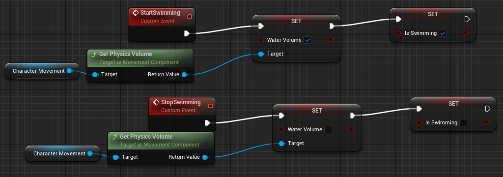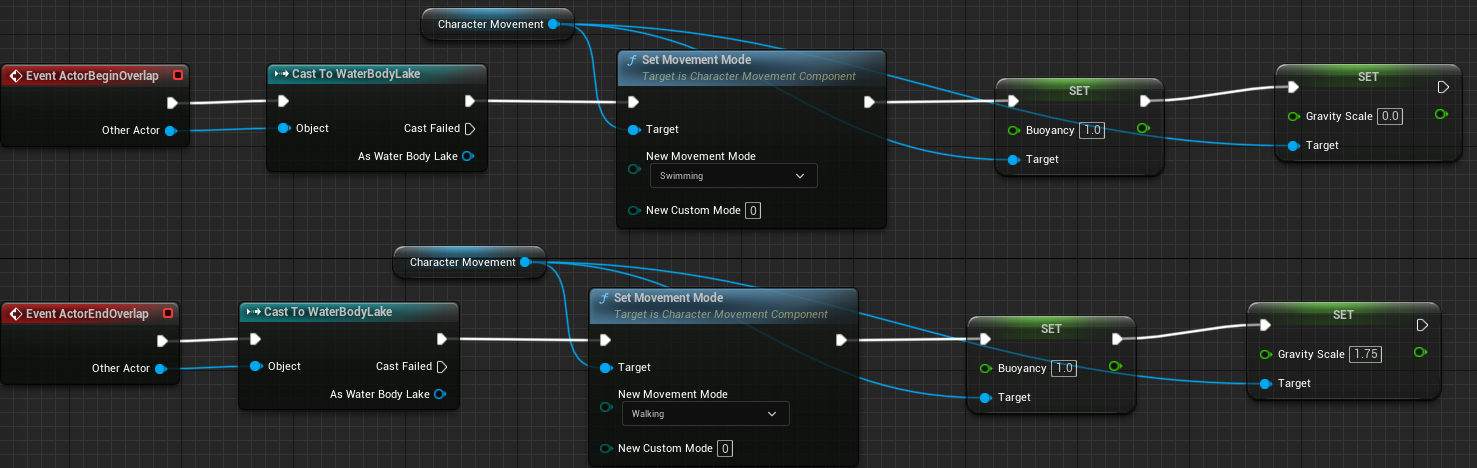 하여간 캐릭터의 Movement컴포넌트의 Movement Mode를 Swimming으로 바꿔주고 중력을 꺼주었다. 나올경우 반대로하고