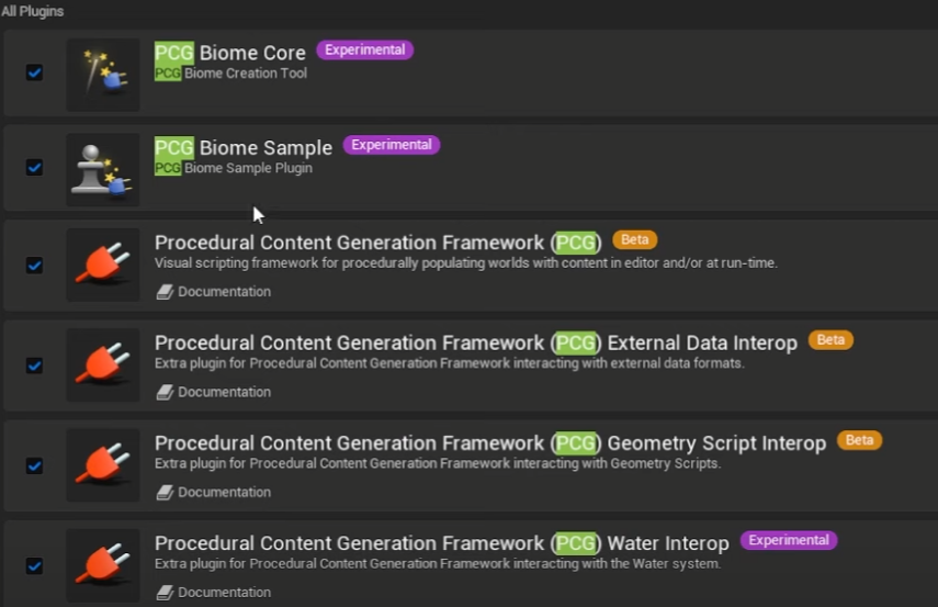 일단 튜토리얼은 언리얼V5.4로 했고 PCG관련 플러그인을 죄다 깔고 리부팅해야한다.