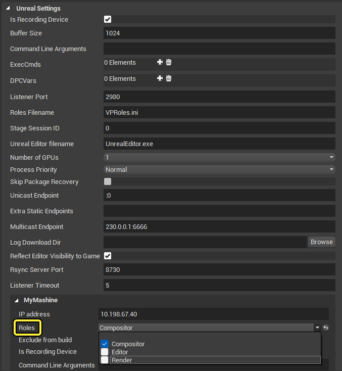 기본적으로 스위치보드(Switchboard)는VPRoles.ini파일에서 역할을 찾습니다.스위치보드 세팅에서 파일 이름을 설정하고 각 디바이스에 하나 이상의 역할을 할당할 수 있습니다. 역할은 언리얼 엔진 실행 시에 엔진으로 전달됩니다. 디바이스의.ini파일이 더 이상 유효하지 않는 등 역할이 지원되지 않는다면 스위치보드에 오류가 기록됩니다.