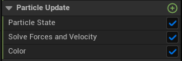 파티클 업데이트 이러한 세팅은 파티클의 수명 동안 어떻게 행동할지 알려줍니다. 파티클 업데이트(Particle Update) 모듈 아래에서 드래그(Drag) 를 선택하고 Delete 키를 눌러 파티클 업데이트 모듈에서 해당 프로퍼티를 삭제합니다.