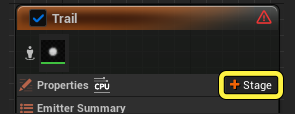 첫 번째 빈 이미터 스택(헤더가아님)을 선택하고 우클릭합니다. 드롭다운 메뉴에서 복사(Copy) 를 선택합니다. 시스템 에디터 에서 우클릭하고 드롭다운 메뉴에서 붙여넣기(Paste) 를 선택합니다. 새 이미터를 선택합니다. 이미터 이름을 클릭하고 Trail 로 변경합니다. 이벤트 핸들러 이벤트 핸들러를 추가하면 이미터 스택이 이벤트를 직접 바인딩하고 일련의 이벤트 중에 이미터를 설정할 수 있습니다.